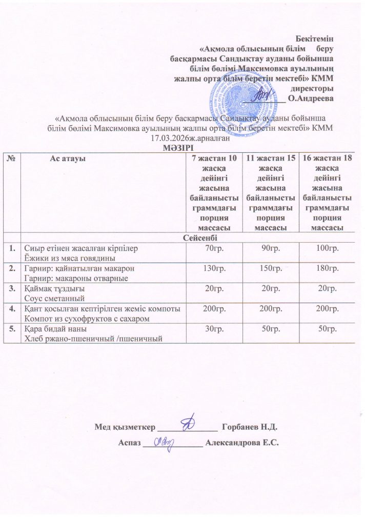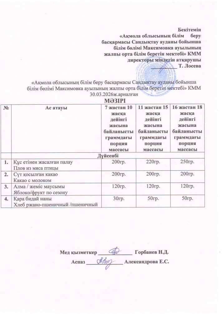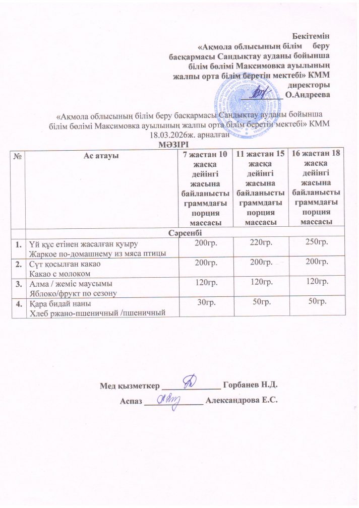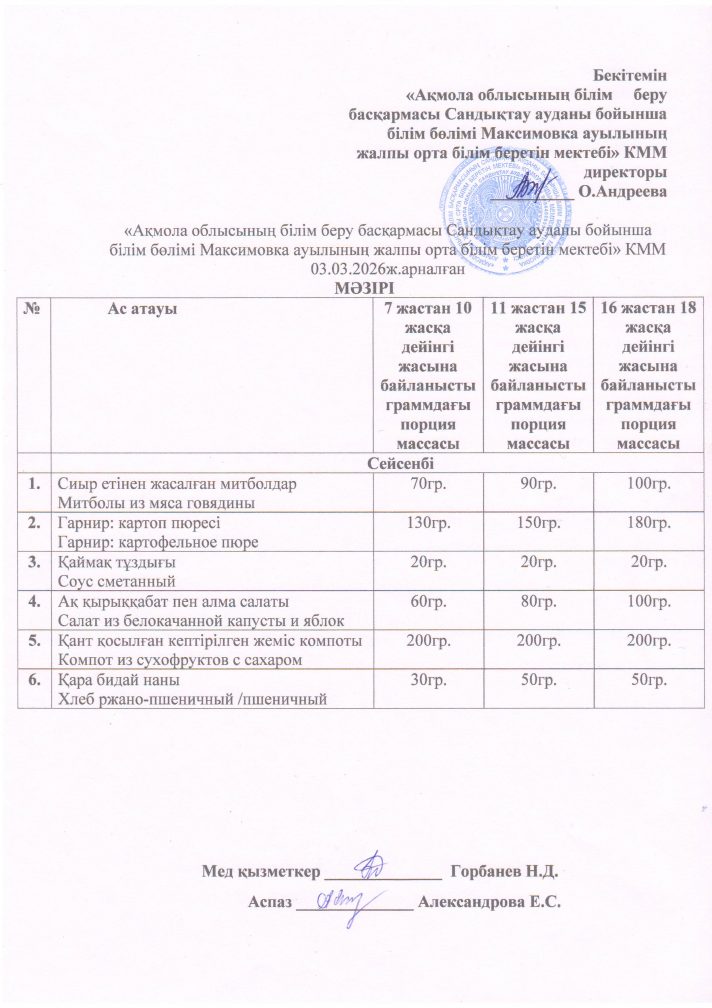 «Ақмола облысы білім басқармасының Сандықтау ауданы бойынша білім бөлімі Максимовка ауылының жалпы орта білім беретін мектебі» коммуналдық мемлекеттік мекемесі