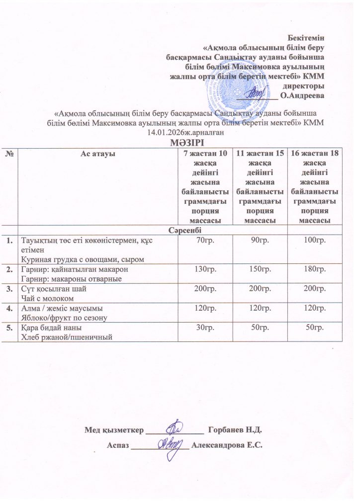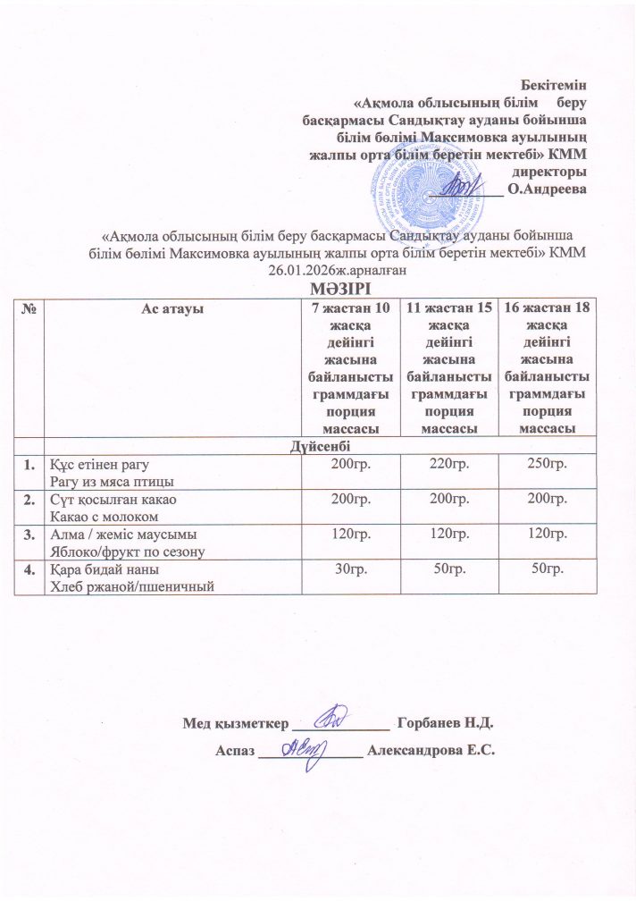 2026 ж. қаңтар айындағы мәзір